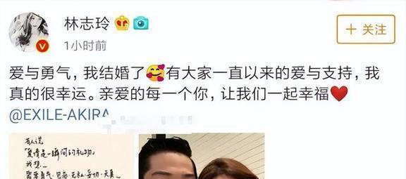 02 一场婚姻,碎了所有光环2019年,林志玲发了条微博,就一句话:“爱与勇气,我结婚了”,可就这么几个字,让她之前所有的光环一下子全没了。网友们都跟疯了似的,好奇到底是谁把女神给娶走了。结果点开照片一看,好家伙,是日本艺人黑泽良平,这下可捅了马蜂窝了,有些网友瞬间就炸了,说话那叫一个难听,完全不管不顾。